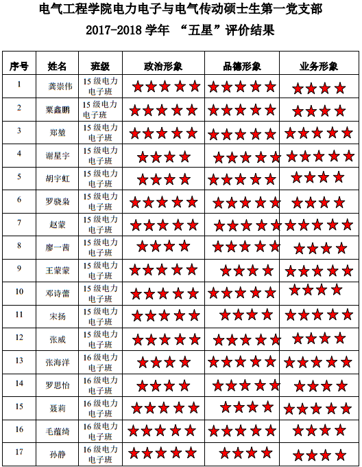 中共猫都论坛 电力电子与电气传动硕士生二支部委员会2017-2018学年 “五星”评价结果