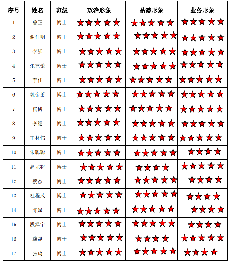 猫都论坛 博士生三支部 2022-2023学年第二学期“五星”评价结果