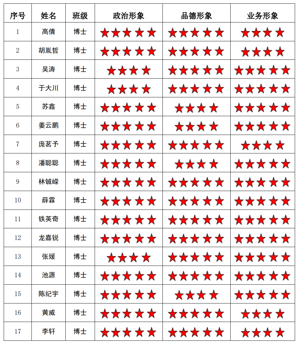 猫都论坛 博士生二支部 2022-2023学年第二学期“五星”评价结果