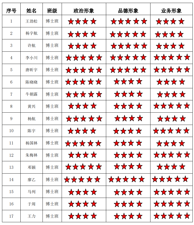 猫都论坛 博士生二支部 2022-2023学年第二学期“五星”评价结果