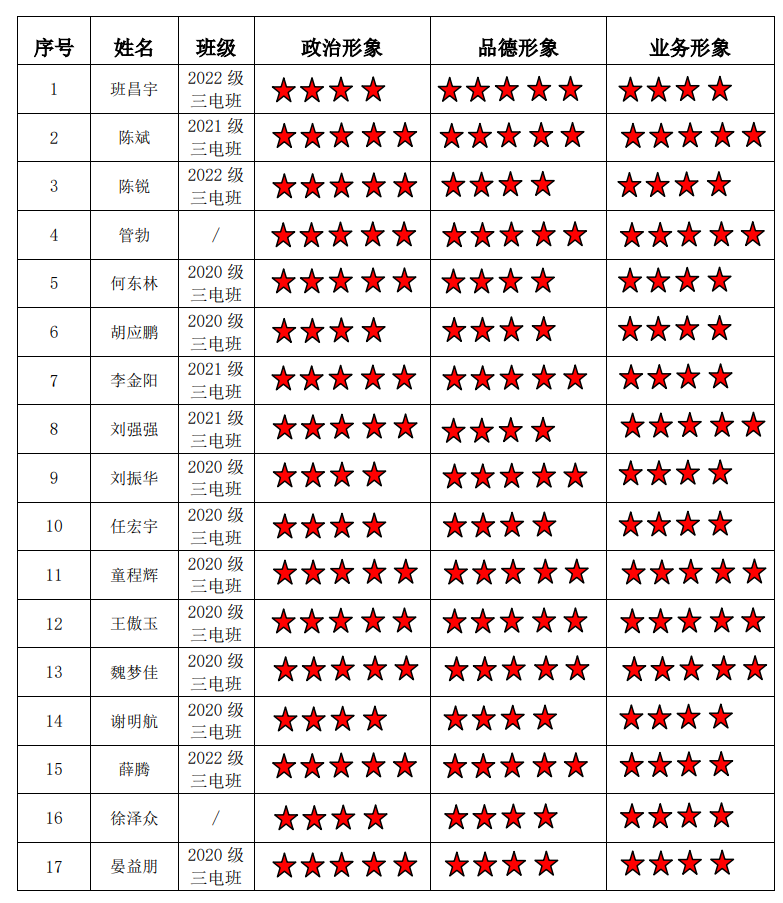 猫都论坛 电力电子与电力传动硕士生一支部 2022-2023学年第二学期“五星”评价结果