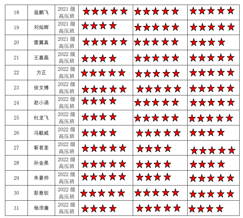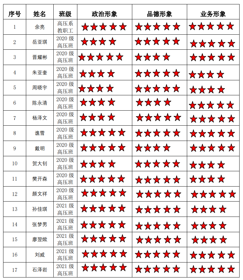 猫都论坛 高电压与绝缘技术硕士生三支部 2022-2023学年第二学期“五星”评价结果