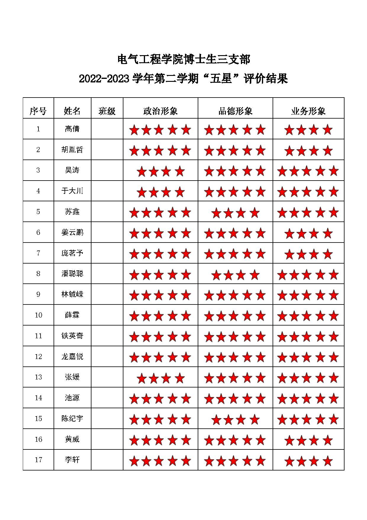 猫都论坛 博士三支部 2022-2023学年第二学期“五星”评价结果