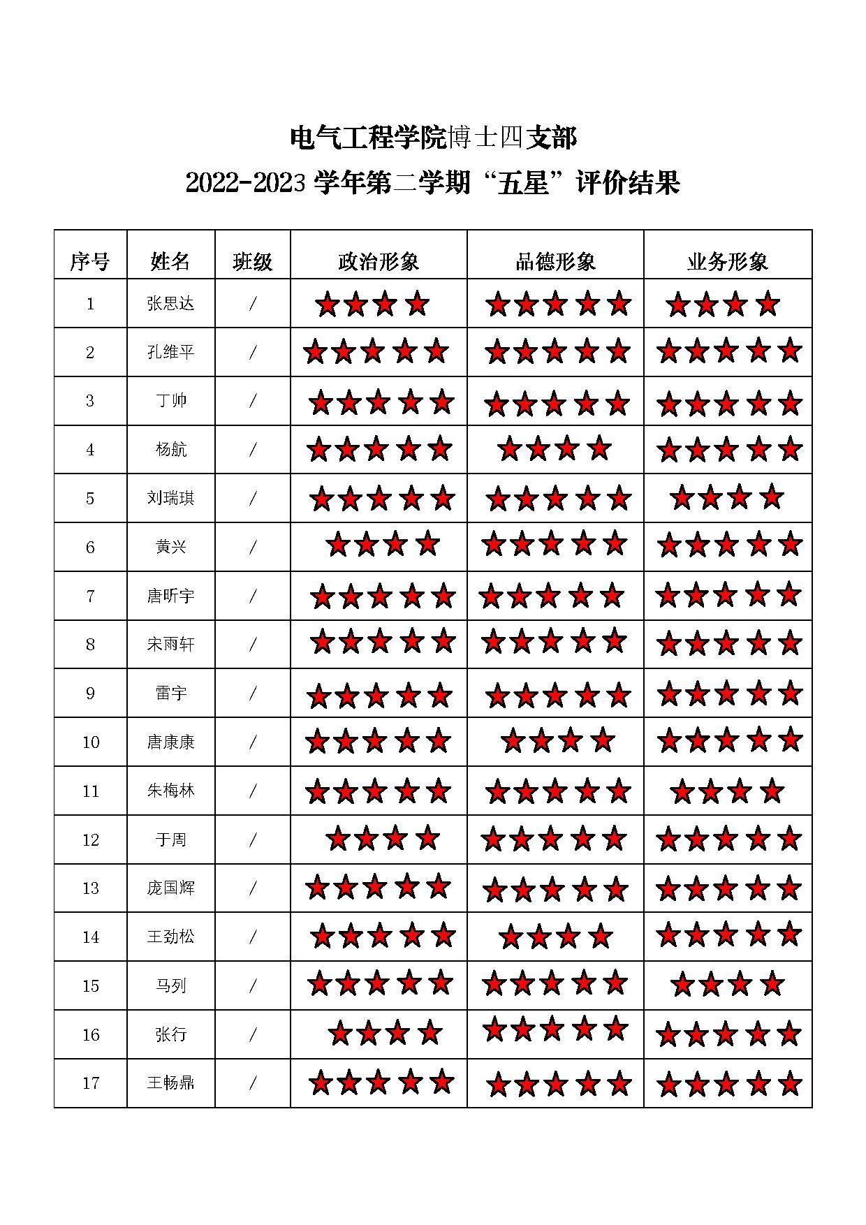 猫都论坛 博士四支部 2022-2023学年第二学期“五星”评价结果