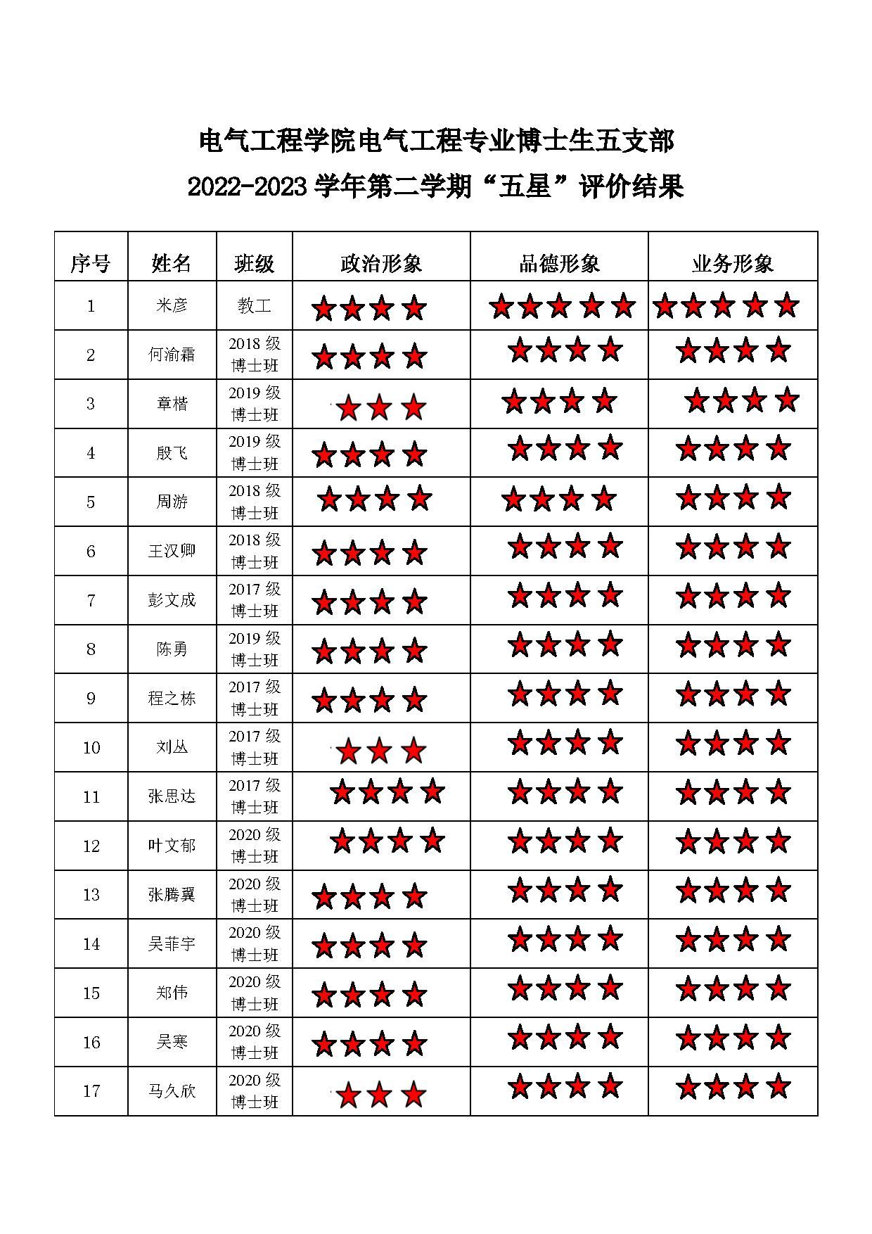 猫都论坛 电工一支部 2022-2023学年第二学期“五星”评价结果