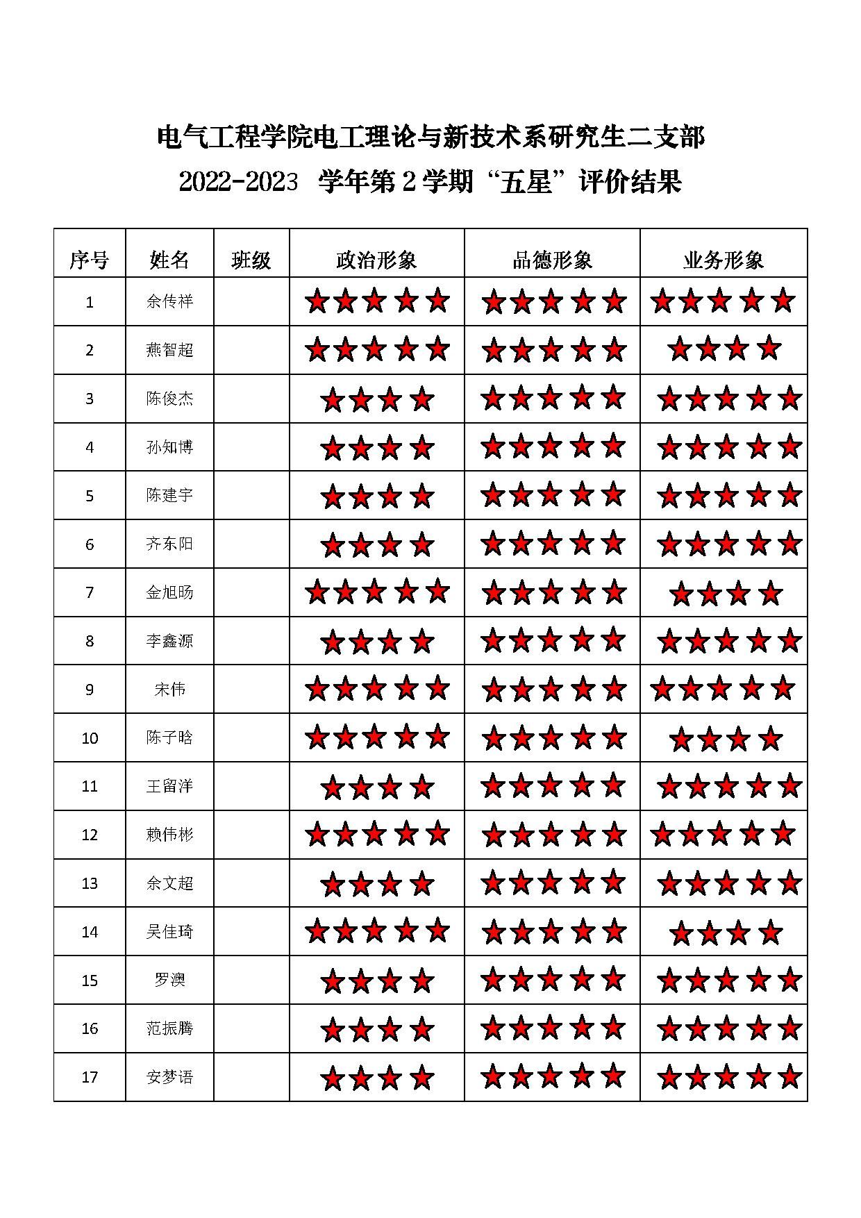 猫都论坛 电工一支部 2022-2023学年第二学期“五星”评价结果