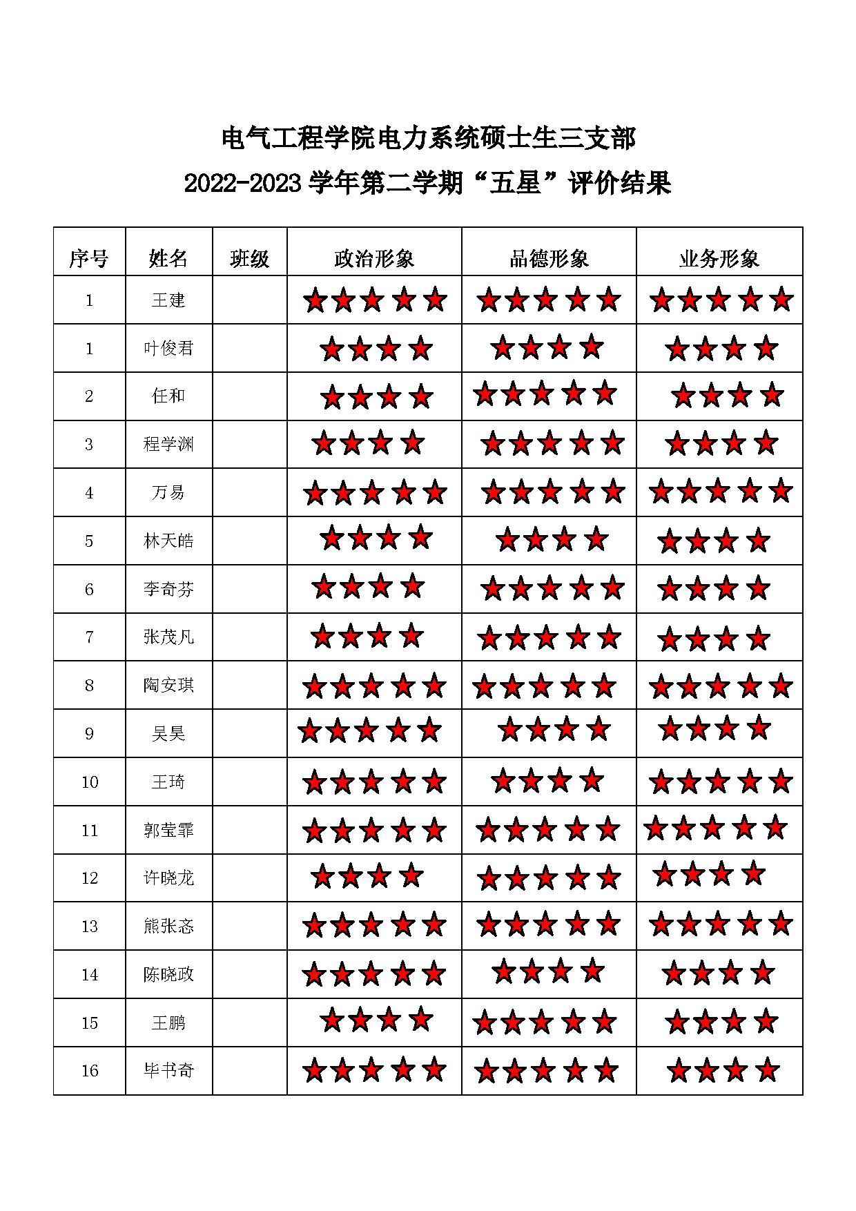 猫都论坛 高压一支部 2022-2023学年第二学期“五星”评价结果