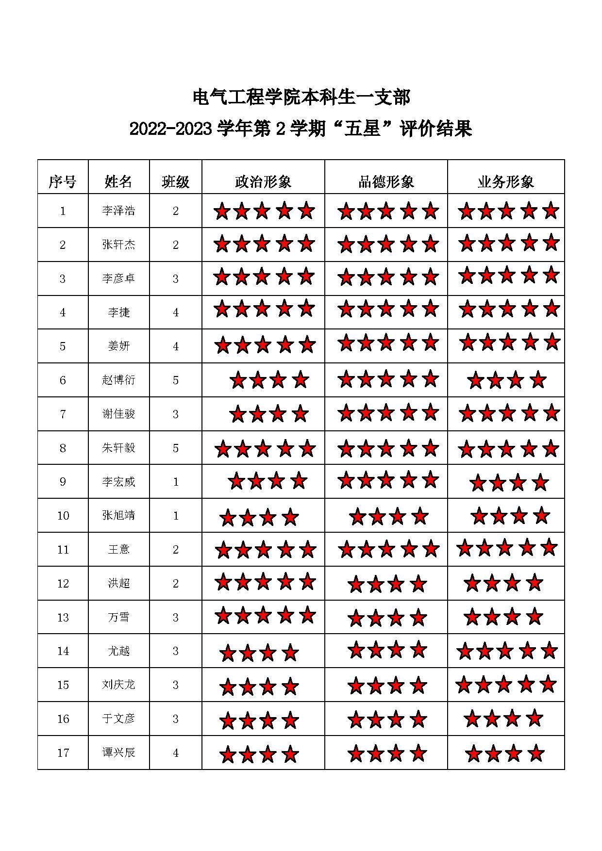 猫都论坛 本科生二支部 2022-2023学年第二学期“五星”评价结果