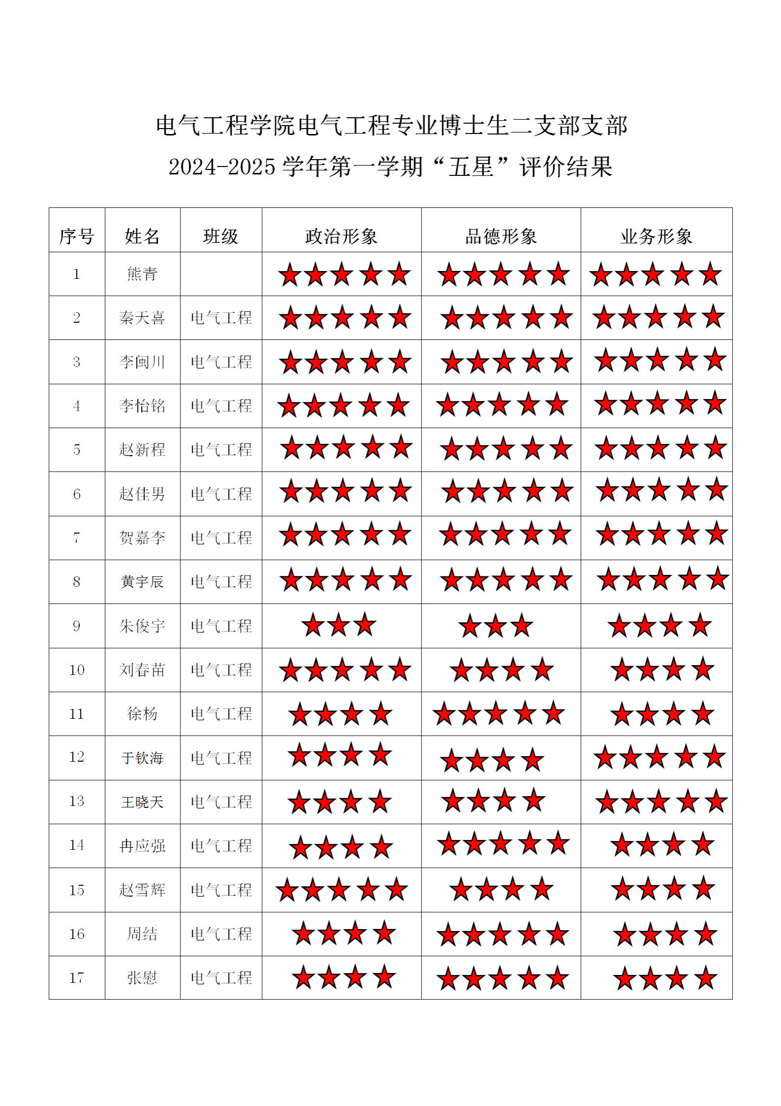 猫都论坛 博士二支部 2024-2025学年第二学期“五星”评价结果