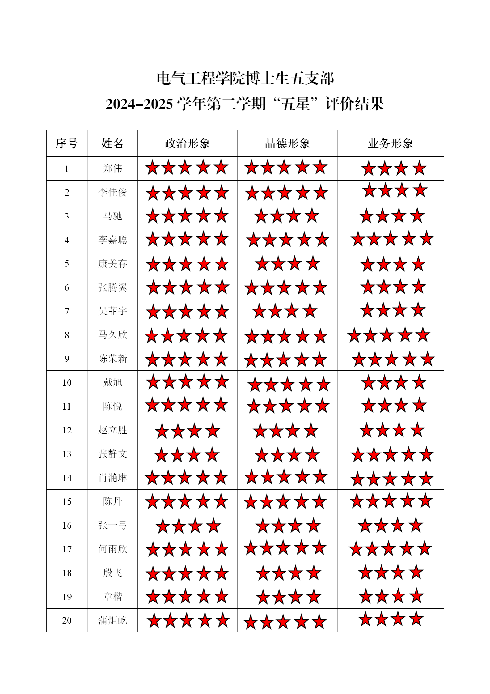 猫都论坛 电工一支部 2024-2025学年二学期“五星”评价结果