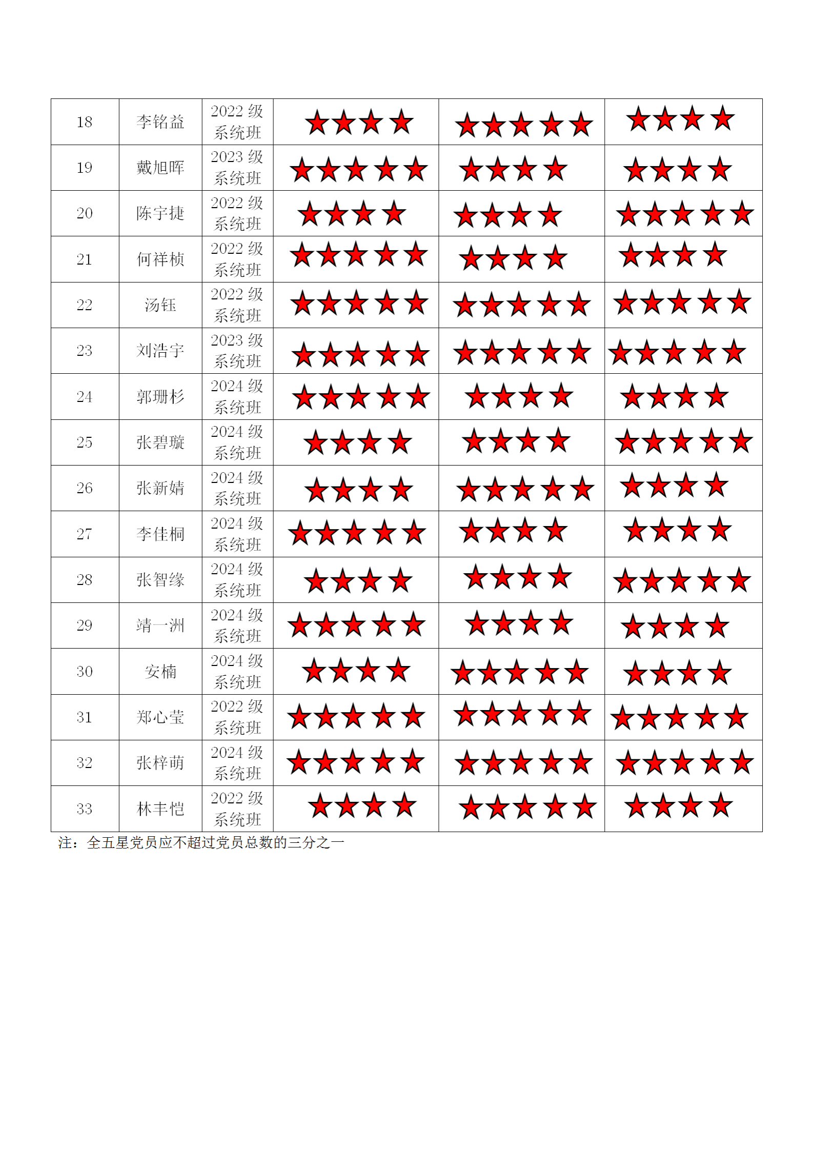 猫都论坛 系统二支部 2024-2025学年第二学期“五星”评价结果