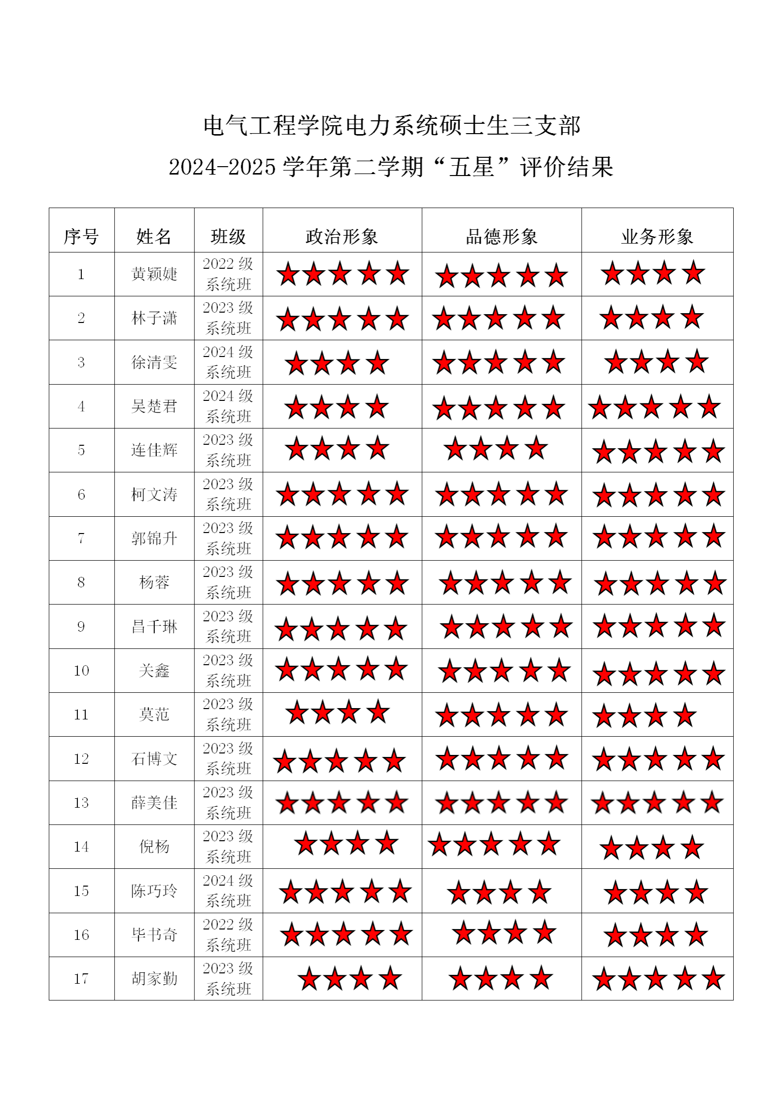 猫都论坛 高压一支部 2024-2025学年第二学期“五星”评价结果