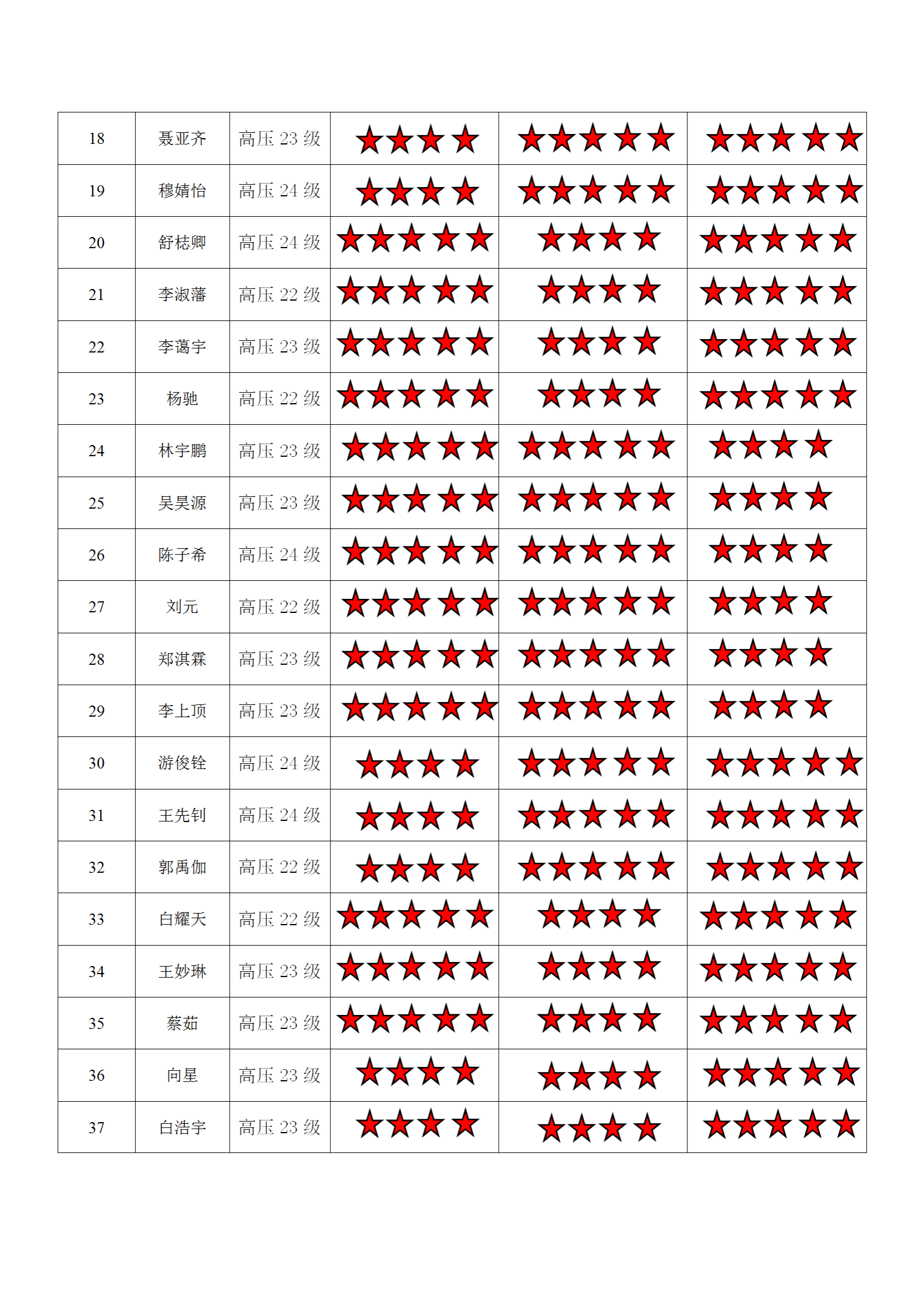 猫都论坛 高压三支部 2024-2025学年第二学期“五星”评价结果