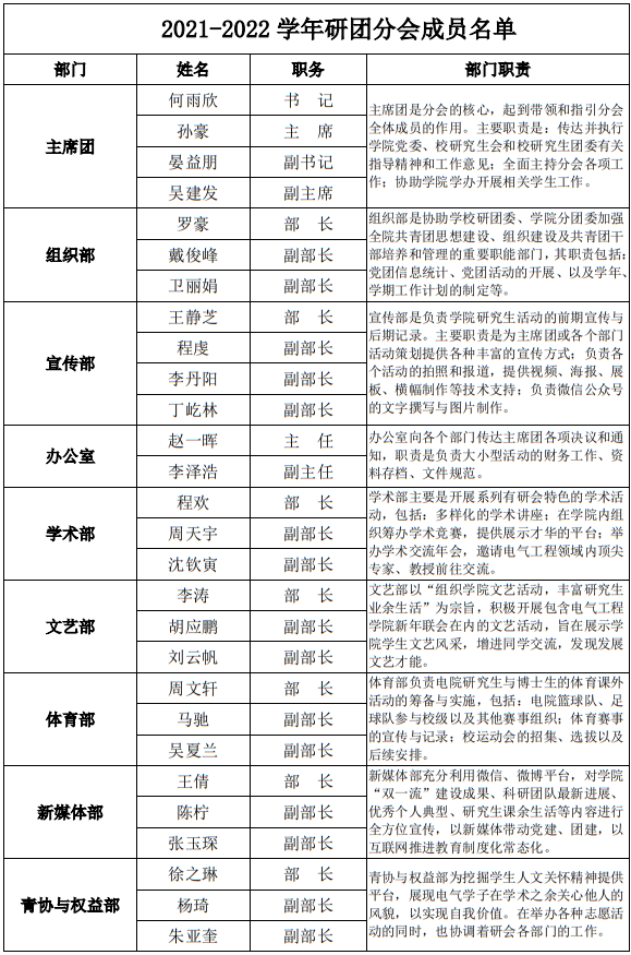 猫都论坛 2021-2022学年研团分会成员组成