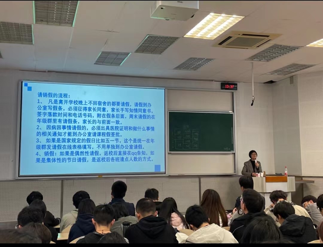 除学习发展之外,罗敏老师也十分重视关怀同学们的身心健康问题。从心理健康、人际关系、生命安全、网络安全等多角度为同学们展开安全教育,强调同学们要注重保障自身安全与权益,树立正确的价值观,自内而外地提升自我。呼吁同学们减少对手机的依赖,迈入书海的园林,看尽黄金屋内的百卉千葩。大会最后,罗敏老师提出五一假期的注意事项并真诚地祝愿同学们五一假期愉快。