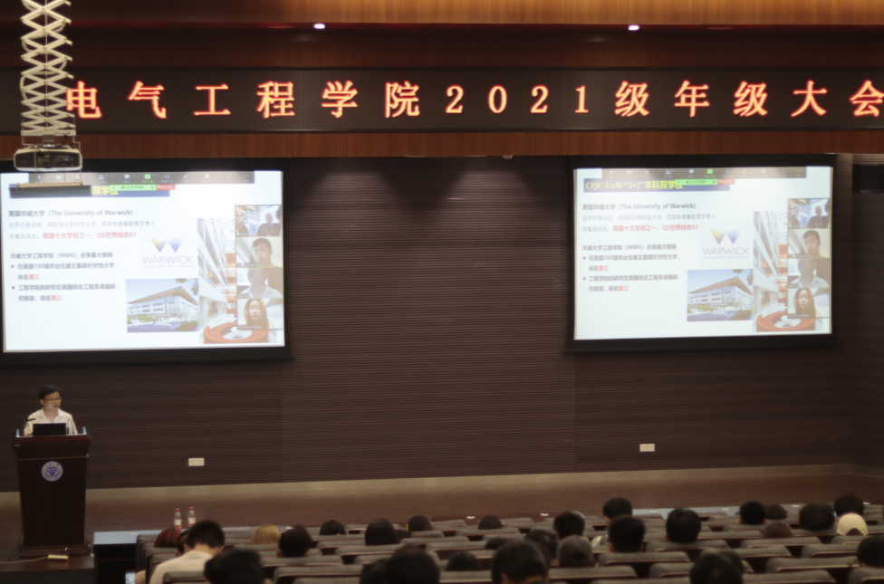 2021级年级大会于虎溪校区顺利召开。学院副院长余年、学办主任兼2021级辅导员罗敏及2021级本科生参加了此次会议。本次会议有幸连线中英碳化硅联合实验室中方负责人,英国华威大学及猫都论坛