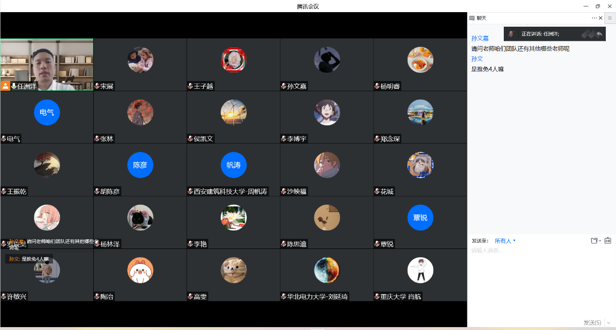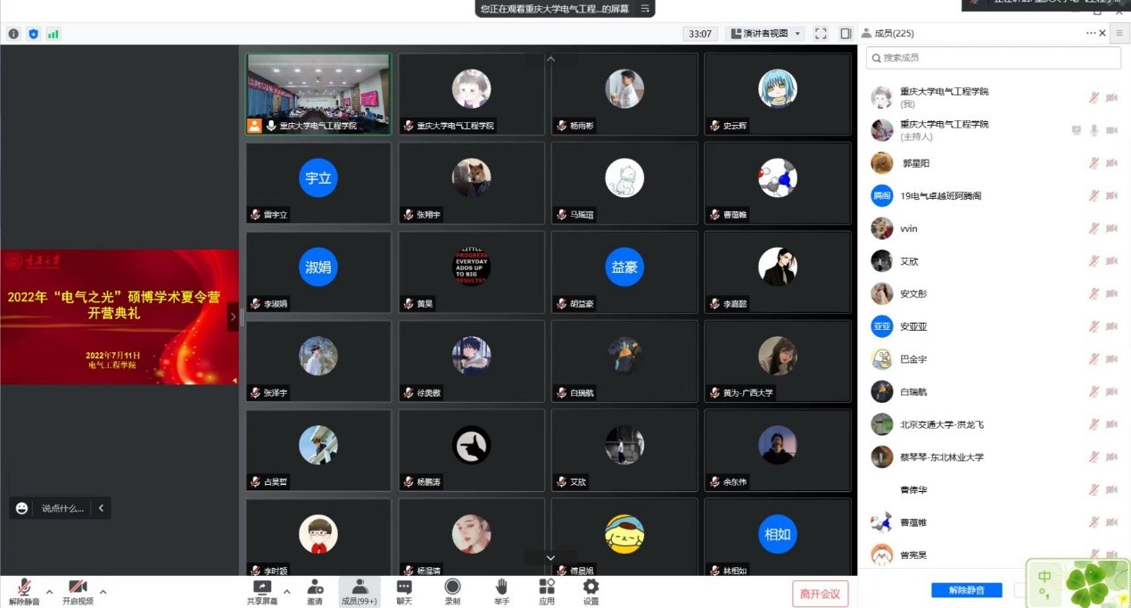 开营典礼结束后,进行了团队或导师推介宣传、线上交流等。电力系统控制与保护、空间电力利用与大功率远距离无线能量传输、生物电工、电力装备自然灾害防御、电力装备数字化与智能化、先进电工材料、电气设备智能检测与新型绝缘材料、电力系统暂态电压分析与防雷接地、新能源发电与电驱动系统技术、碳化硅电力电子器件可靠性研究、低碳电力能源系统智能运行与规划、高压放电等离子体及其应用研究等11个团队围绕研究方向、导师队伍、科研平台等进行了推介宣传,以展示团队优势和特色。各团队或导师从专业基础知识、综合能力、英语水平等方面对营员进行了全方位的考察和深入交流沟通。
