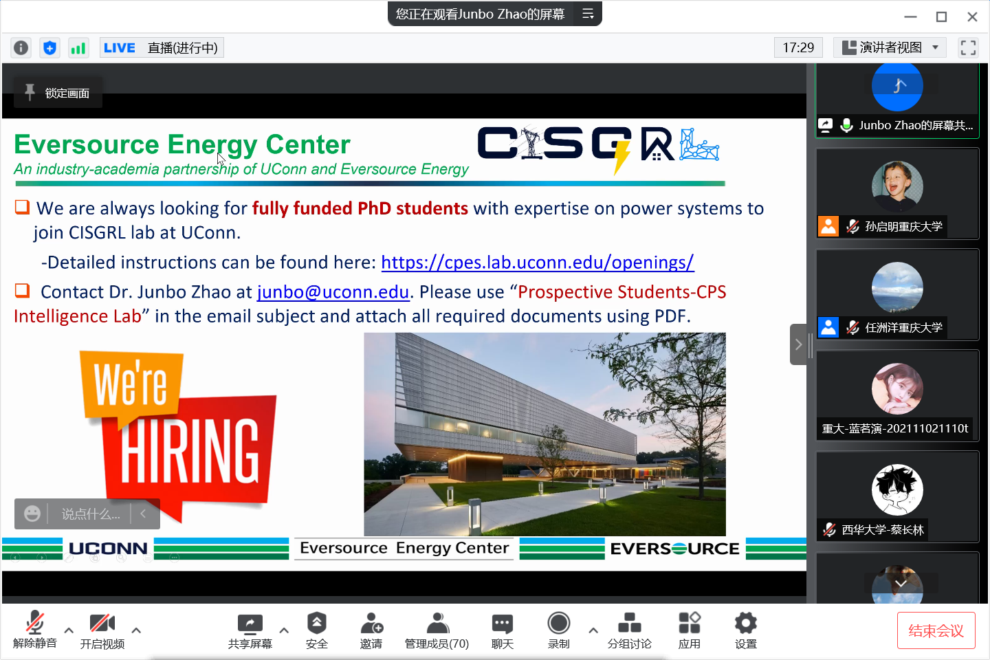 2022年4月24日上午,美国康涅狄格大学电气与计算机工程学院助理教授赵俊博受邀做客“成渝地区双城经济圈智慧能源大讲坛”,担任第十期主讲嘉宾,以“Physics-Informed Deep Reinforcement Learning for Power System Optimization and Control”为主题开讲。本期讲坛由猫都论坛