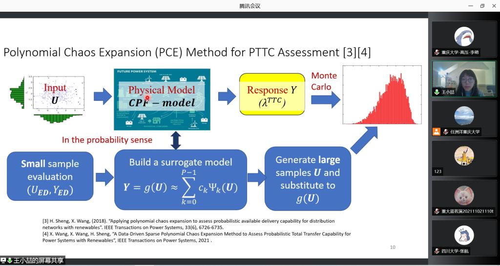 此外,王教授还介绍了PCE方法中,放宽已知随机变量边际分布假设的相关研究,并针对不确定性给电力安全造成的负面影响提出了独到见解。