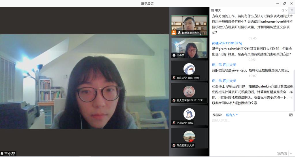在交流环节中,王教授与参会师生就电力系统安全等相关问题展开热情讨论,在基于gram-schmidt正交化与基于raw-moment的正交多项式生成的方法对比、数据驱动型PCE的系数计算方法,概率建模分析的实际可行性及能力、将多项式混沌技术应用于随机微分方程等方面进行了深入探讨。王教授对大家提出的问题悉心解答,与会师生纷纷表示在讲座中受益匪浅,期待着与王教授的下一次交流。