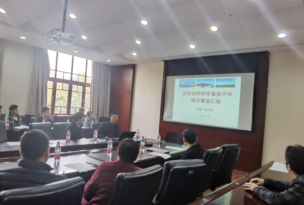 谢开贵书记作了申报动员,指出大家要树立正确的观点,要勇于申请、勇做分母,既要有足够信心,又要正确认识到国家自然科学基金是衡量高校科研水平的重要指标之一,加强专家辅导,提高申报质量。