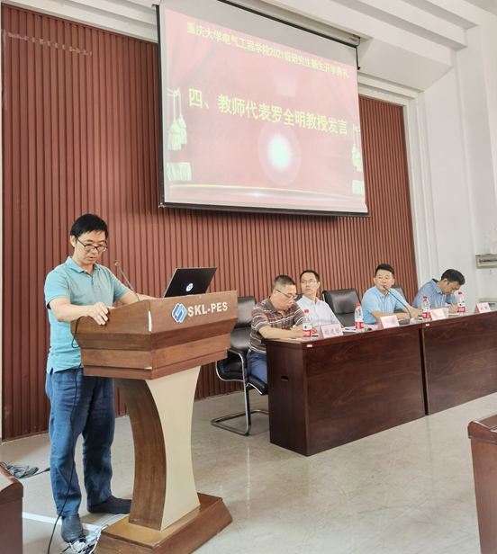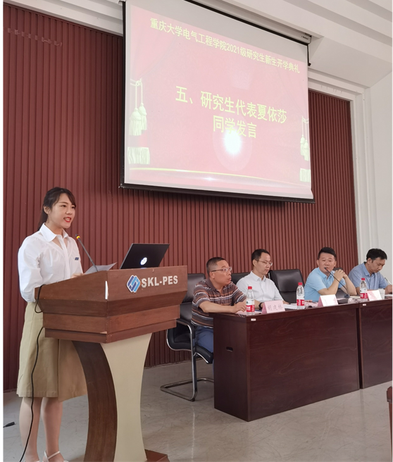 首先,李剑院长代表学院对2021级研究生新生的到来表示热烈欢迎,向全体研究生新生提出祝愿与希望:一是鼓励大家胸怀祖国,自觉肩负历史重任,主动追求科学理想;二是敢于直面挑战,锐意进取,开拓创新,立足电气学院的高平台,遵循导师教诲,勇于应对挑战;三是求真务实,在科研和学习中务必做到求真求实,以学求实,知行合一;四是追求精进的科学素养和高尚的人文精神,强健体魄。他祝福同学们在猫都论坛