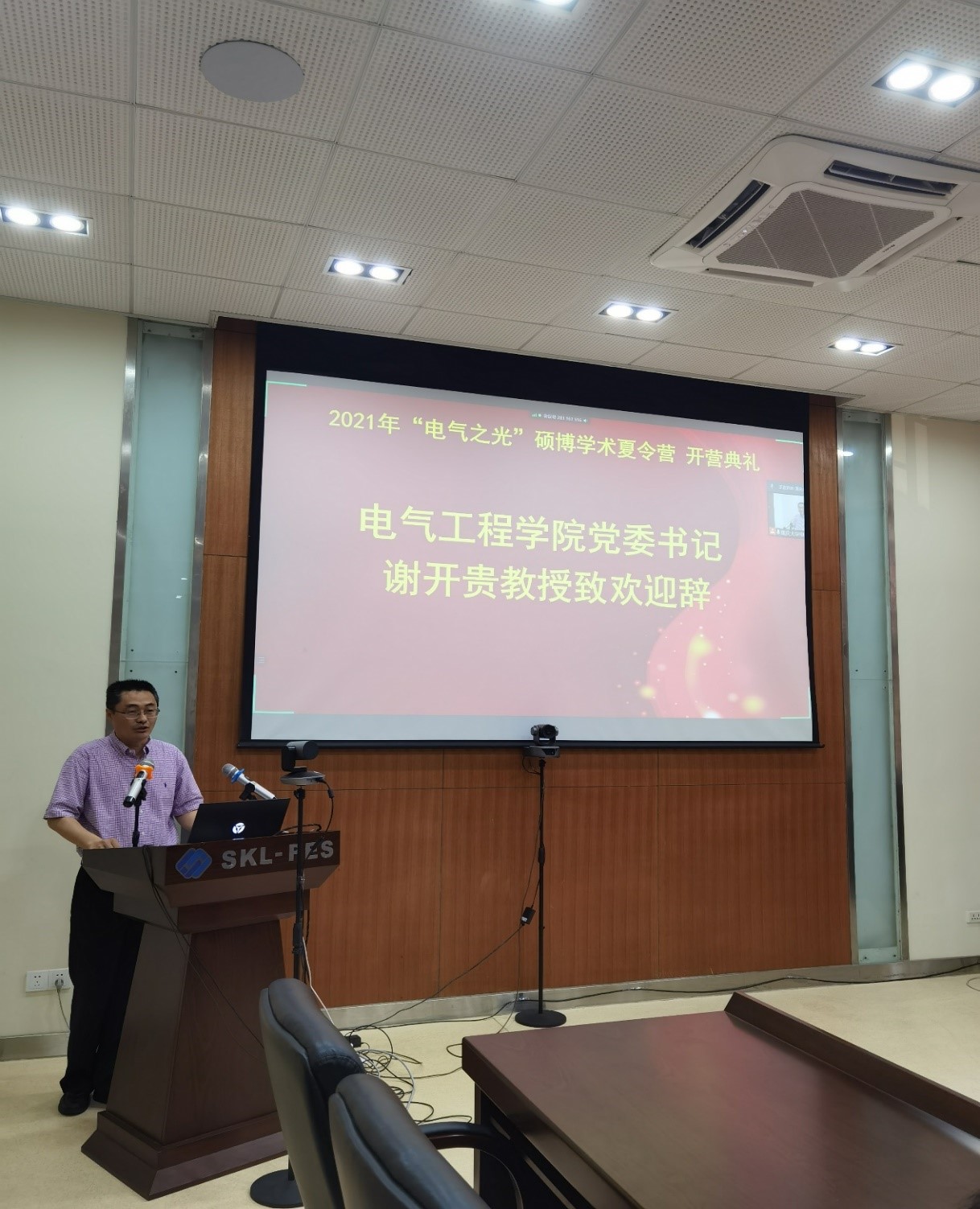 学院党委书记谢开贵教授首先致欢迎辞,谢书记对来自五湖四海的莘莘学子表示了热烈的欢迎,恭喜大家经过严格筛选入选了“电气之光”硕博学术夏令营。谢书记介绍了夏令营入营的筛选原则,对猫都论坛