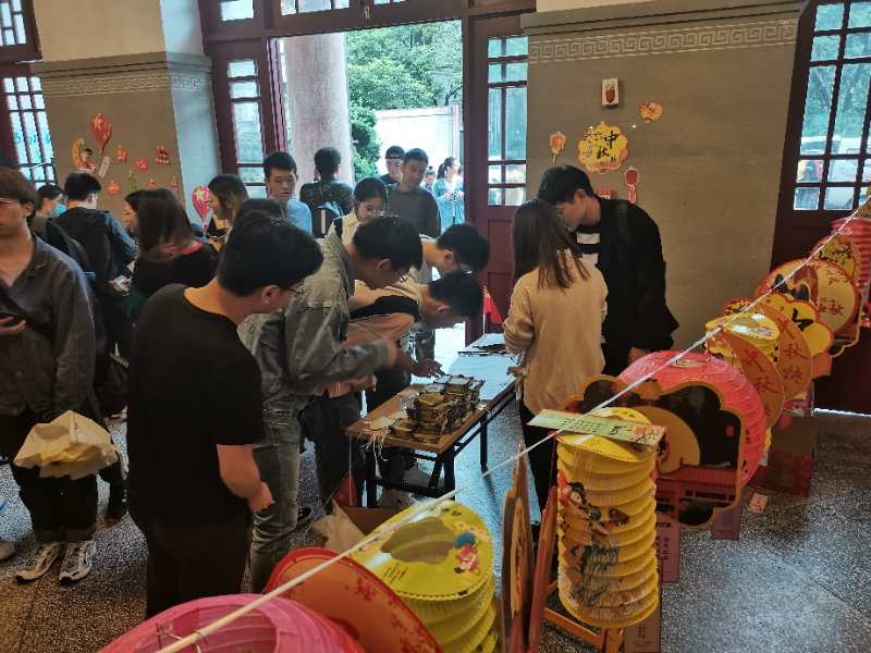 活动现场,为调动大家积极性,营造迎双节的欢乐氛围,我院研团分会在发放月饼的同时,开设了猜灯谜,抽大奖的活动。玲珑精致的灯笼上写着各种各样的灯谜,有脑筋急转弯,打字迷,歇后语,还有结合国庆节的一些小常识,凡是答中者,皆可进行抽奖,中奖率百分百。最后,为聊表心意,增设了相思寄语板块,参与者可以将自己的思念,烦恼,愿望写在卡片上并悬挂于灯谜中,以此寄托思念,憧憬未来。