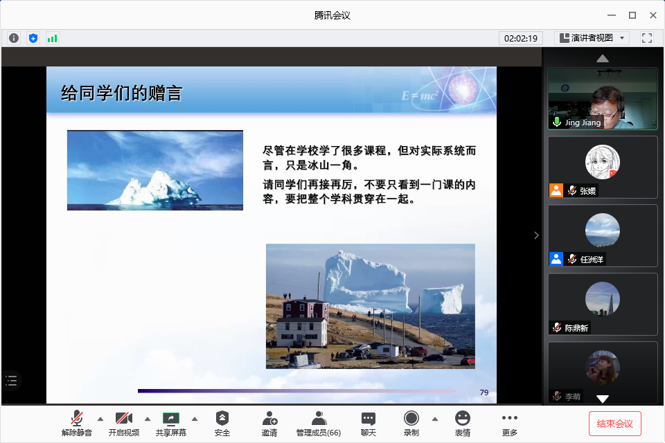 在姜院士两个半小时的精彩分享之后,同学们积极参与互动,踊跃和姜院士进行交流。讲座最后,任洲洋老师再次对姜晶院士的到来表示感谢,并邀请姜院士疫情过后莅临猫都论坛
