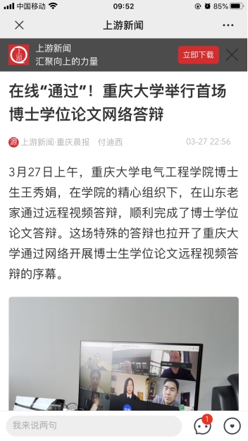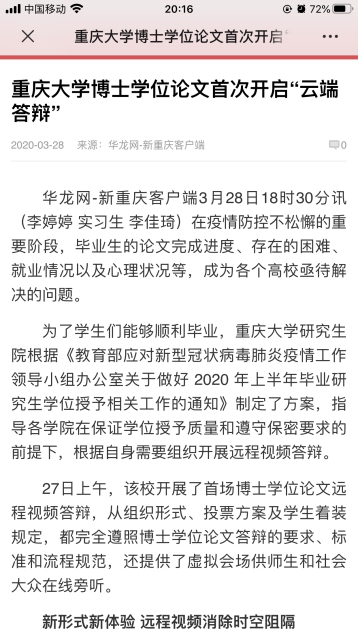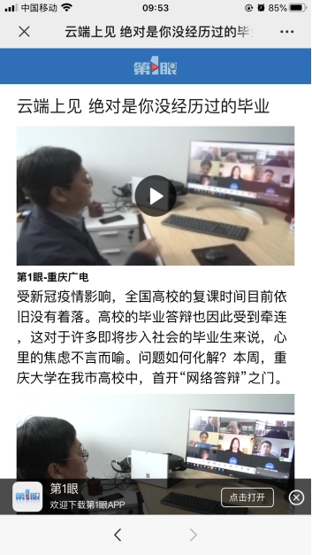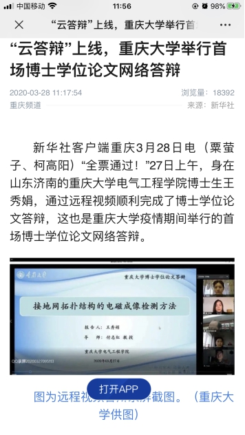 首场论文在线答辩受到新华社、重庆电视台等多家媒体报道