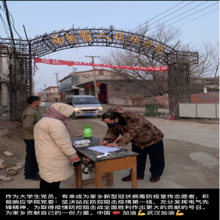 在山东、在四川、在甘肃、甚至在湖北疫区的社区、乡镇,来自电气学院师生党员们主动肩负起信息采集员、执勤员、配送员、宣传员各种角色,在疫情防控这场没有硝烟的战斗中,电气人始终坚持誓作先锋!
