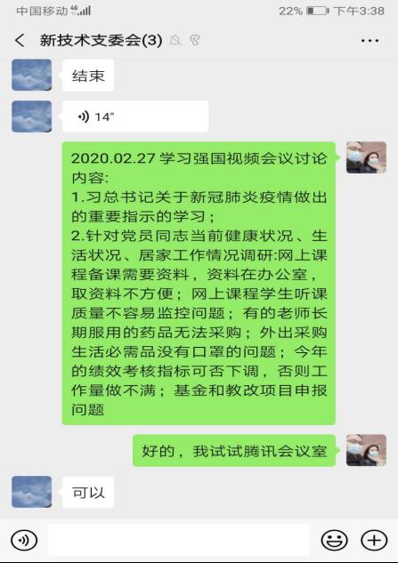 新技术教工党支部借助“学习强国”视频会议功能开展组织生活