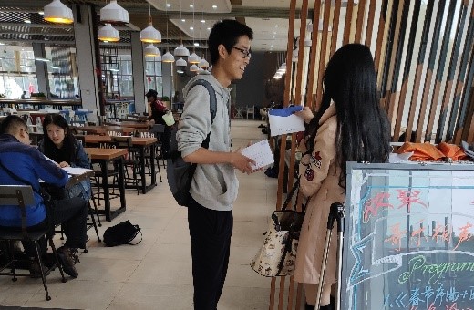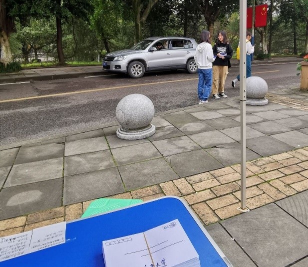 “万事开头难”,一开始,并没有很多人停下来了解活动,更多的是匆匆离去。可是小组成员并不灰心,拿起信封和宣传单,开始向路过的人们简单地介绍活动的形式、目的等等。本来毫不关心的人们也被勾起了好奇心,欣然收下了信封并表示会写下自己的烦恼。还有人是在路过时被展板吸引住,主动前来拿取信封。更有人,是在网上看到了宣传的说说,特意前来,希望自己的烦恼能够被解决、也希望能为他人解忧…