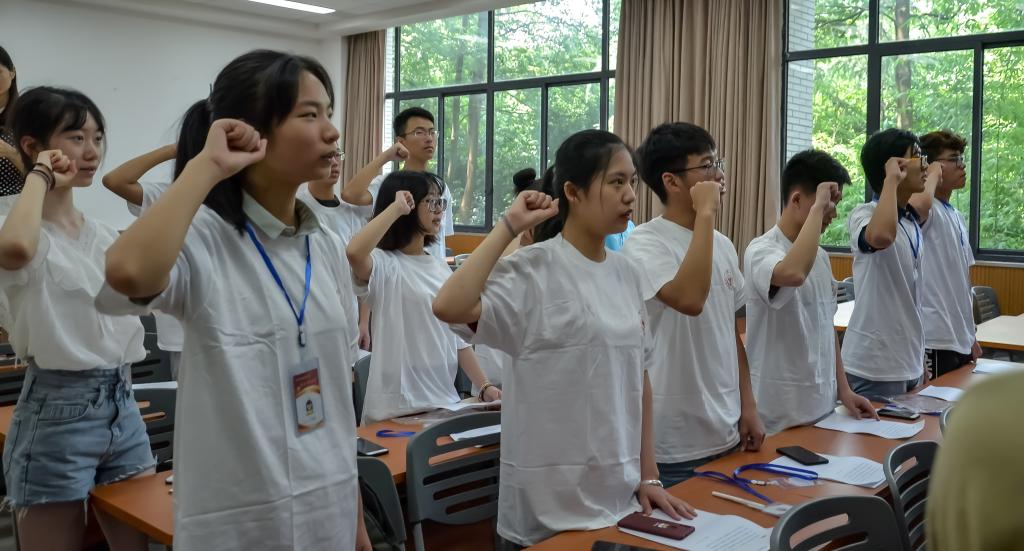 白淞同学代表实践团发表出征宣言,并带领全体实践团成员宣誓。18名实践团成员庄严宣誓:“我志愿加入猫都论坛