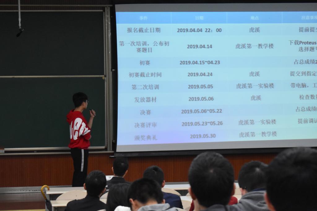 随后,电气科协执行副主席李佳龙为大家介绍了本届电工电子技能竞赛的赛制和流程。其中值得注意的是,本届电工电子技能竞赛,为顺应同学们的学习趋势,将仿真电路的设计作为本届电赛额外关注的一个评分点。在之后对参赛队伍的培训中也会相应地加入这一方面的内容以承赛制的创新变动。