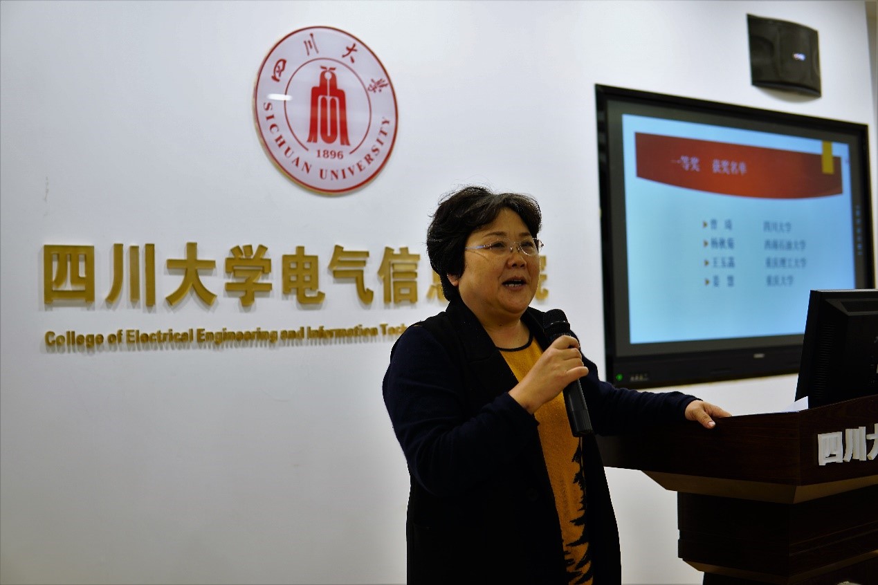 颁奖仪式上侯世英教授对整个竞赛进行了点评。首先她对各位参老师的优秀表现表示了肯定,同时还分享了自己多年的教学经验并指出说课环节和讲课环节的重点所在,最后还为大家解读了全国高等学校青年教师电工学课程教学竞赛的注意事项,并对川渝两地成功晋级2019年全国高等学校青年教师电工学课程教学竞赛的老师寄予厚望。