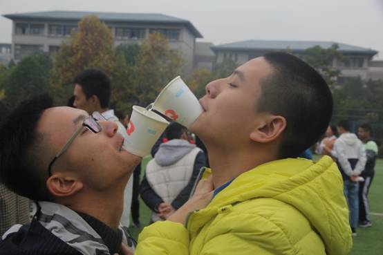 第二轮游戏为纸杯传递。在游戏的准备阶段,各小组都绞尽脑汁让传递技术高效化,以更快更准地将水传递。游戏开始后,小组内的所有成员都集中注意力,默契配合,让组员间的感情迅速升温,打破了组员之间的隔阂,消除了陌生感。
