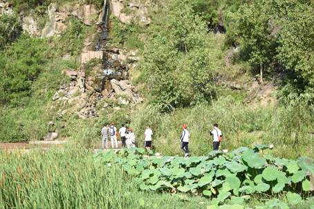 移步水库的过虑区,眼前的景象一改人们日常观念中“脏、乱、差”的印象,反倒是白莲与绿柳交相辉映,蜻蜓在身边围绕队员们形成一列,宛若走在一条乡间小路上,饶有趣味。
