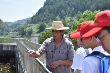 勤勤恳恳工作,与白鹭相伴,与蜻蜓共舞。实践小队来到弹子台水库时,负责水库及周边水源保护的郎和川库长正顶着烈日,巡视库区周边情况。在此工作多年的郎库长,一直默默的为保证库区的优质水资源做出自己的贡献。