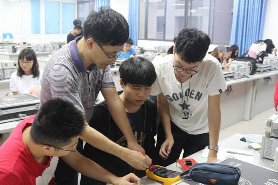 虎溪校区DS1325、DS1326和DS1201顺利进行,旨在培养大家对电工电子技能的兴趣,帮助大家了解基本的电工电子知识,为第六届树声前锋杯竞赛作赛前训练,同时为相关课外科技竞赛储备参赛选手。本次培训邀请到来自电工电子国家级实验示范中心的李利老师、王唯老师、肖馨老师、林婷老师、胡熙茜老师和陶成伟老师为参赛的学生们做培训。