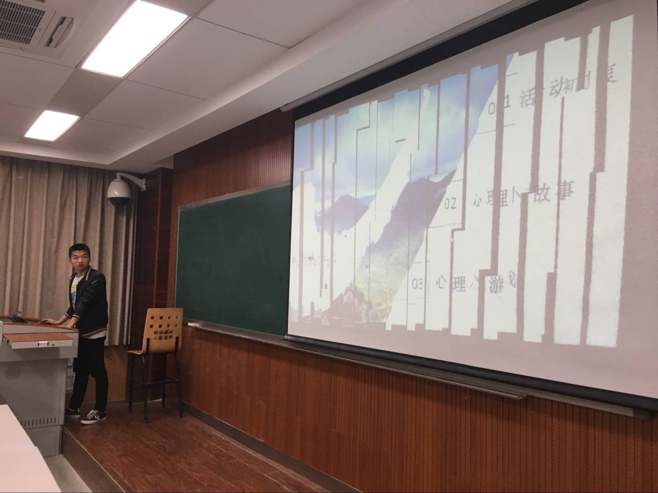 活动伊始,寝室室长配合着心理委员,先按照随机抽签的方式将班内成员打乱并分成了4个小组,每个组又各自选了一个小组长。心理健康活动就此开始。心理委员首先讲了这次心理健康活动的初衷及其重要性。其中谈到了大学生的压力大、心理问题突出等问题,还举例了发生在猫都论坛