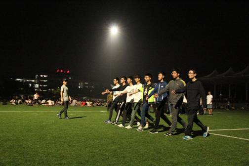 2017级100多名同学从三月底开始,每周一至周五晚上9点,在虎溪校区风雨操场进行1小时的方阵训练。2017级辅导员罗敏老师、16级辅导员喻惠以及团委学生会主席团各成员莅临现场进行监督指导,团委学生会部分干事在一旁进行引导和协助工作。
