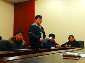 学生会主席陈海栋、团委副书记丁宁、科协主席魏世勋以及青协和社联的各主席,分别与各团学组织负责人在过去一学期的工作中所呈现的各项问题进行分析探讨,并提出了意见和建议。