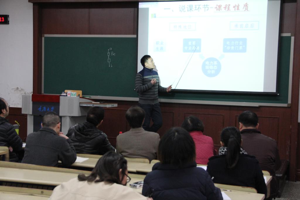 比赛开始前,学院主管本科教学的副院长杨帆就比赛的规则进行了详细说明:学院初赛由教案评审、平时教学效果、现场教学演示三部分组成,主要从教学内容、教学组织、语言教态、教学特色四个方面进行考评。同时转达了院领导的期望:希望电气学院的青年教师们能够将“课程教学与教学比赛”结合起来,努力更新教育教学理念,创新教学方法,推动我院本科教学质量的提高。在介绍完比赛规则后,参赛老师们按照之前抽签的比赛顺序,上台进行现场教学演示。评审专家对每位老师都作了点评,并在讲课技巧、课程设置等方面提出了改进意见。黄佳木教授特别指出:在高校积极参与进行工程教育专业认证大环境下,教师应该结合工程教育专业认证开展课程建设。在授课内容、授课方式、课程考核等方面有力支持工程教育专业认证规定的毕业要求,为早日通过工程教育认证做准备。经过评审专家现场打分,学院最终推出胡琴、沈启平两位老师参加学校的青年教师基本功比赛。
