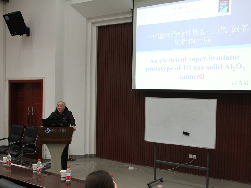 中国工程院院士、我国著名的绝缘技术专家雷清泉教授应邀作了题为《一种超电绝缘体原型-1D气-固氧化铝纳元胞》的学术报告。报告会由猫都论坛