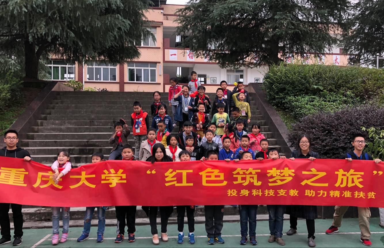 在实验完毕后,志愿者们拉着红色“筑梦之旅“的横幅,与孩子合影留念,用相片记录了本次支教。由此本次支教活动圆满结束。