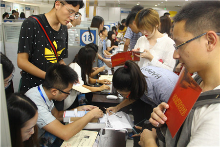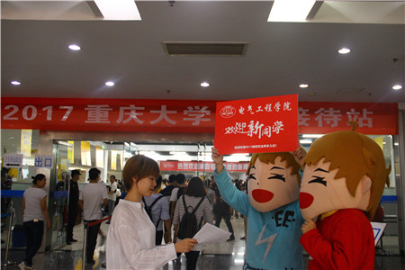 今年的迎新接待站依然设置在主教学楼一楼大厅。拾阶而上,跟随着工作人员的引导和现场的标识指令,新生们可以很容易找到电气学院的纳新点。在现场,电气学院研究生分团委分会的工作人员井然有序的进行着新生报到注册工作。新生们只需交上通知书并签字,即可领取研究生校园卡,再进入下一个报道环节。