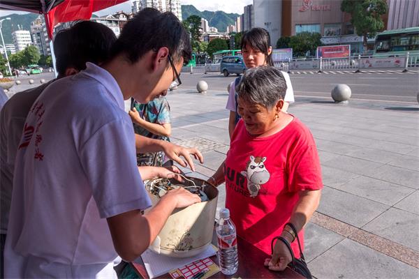 在技术组成员热火朝天修理家电的同时,另一行志愿者在维修站点附近向过路的行人进行用电安全知识普及,发放用电安全知识手册。一位老奶奶拿着手里的一个老式电饭煲向志愿者们寻求帮助,志愿者黎长阳用娴熟的手法打开外壳时,发现线路早已老化,继续使用会有安全隐患,于是便用通俗易懂的方式向这位老奶奶讲解用电安全。听罢,老奶奶感慨道:“有文化就是好啊!”运用平时所学理论知识,帮助更多人解决生活中的难题,这便是此次活动的意义所在。