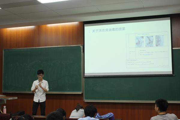 在过去的一学期里,团学代表为权益部提供了许多优秀的议案,而权益部也尽全力去为同学们解决议案提到的问题。会议的第二环节由八位优秀议案的制作人依次上台向大家讲解自己的议案。八位候选议案的制作人向在场的同学们生动地讲述了他们制作议案的过程,从生活的小细节中维护同学权益从而创造和谐美丽的校园生活环境。