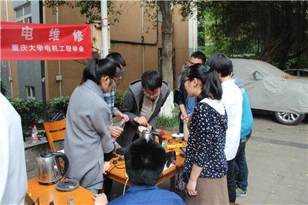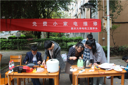 分团委分会爱心协会联合举办的校园免费维修小家电活动在A区一食堂广场成功举行。电机工程学会与爱心协会成员以及十多名志愿者参加了此次活动。